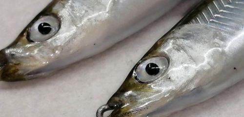 頭皮のみ西湖産ワカサギを使用。ボディーはアルミ貼りです。