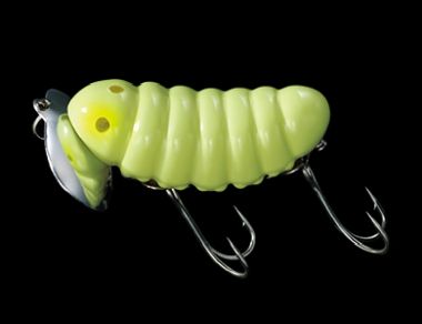 夕方以降活発に動き回るターゲットの「ナマズ」に対して存在感をアピールするために、キャタピーⅡに求めたものは、ただ引き前提で水を動かし、音を出すルアーを使用する事により一層魚にアピールする。しかも、光量が極端に少ない夕方以降においてナマズゲームをより一層楽しいものにするために、ルアーの視認性を一層高める機能を盛り込みました。
